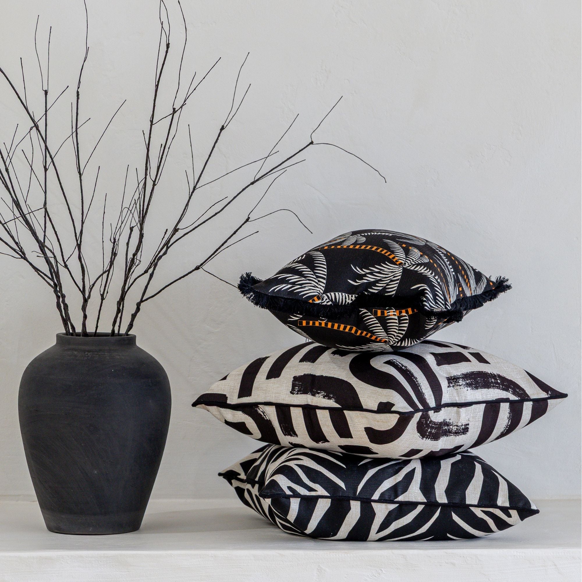Cushion Cover Coastal Fringe Black Tavarua 35cm x 50cm