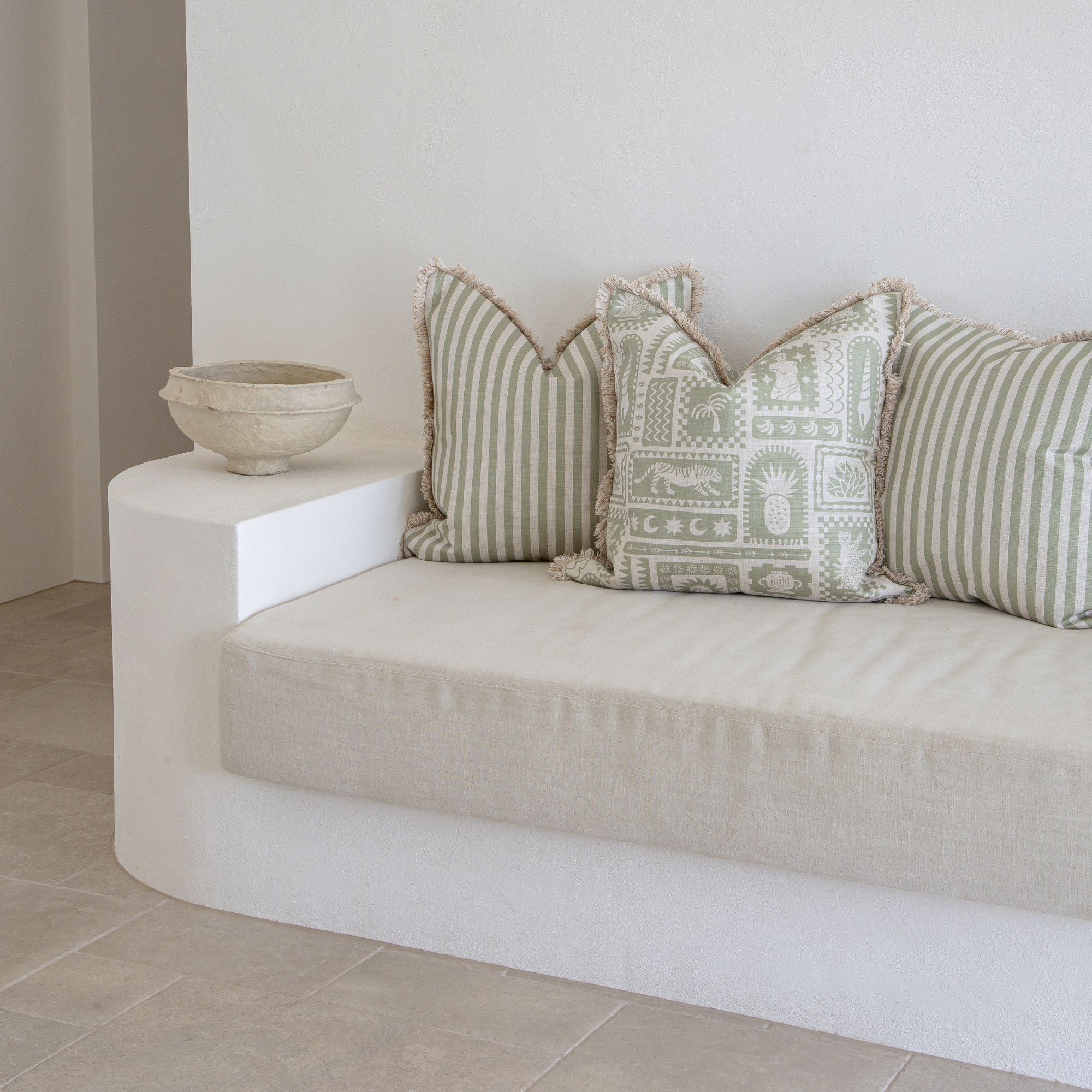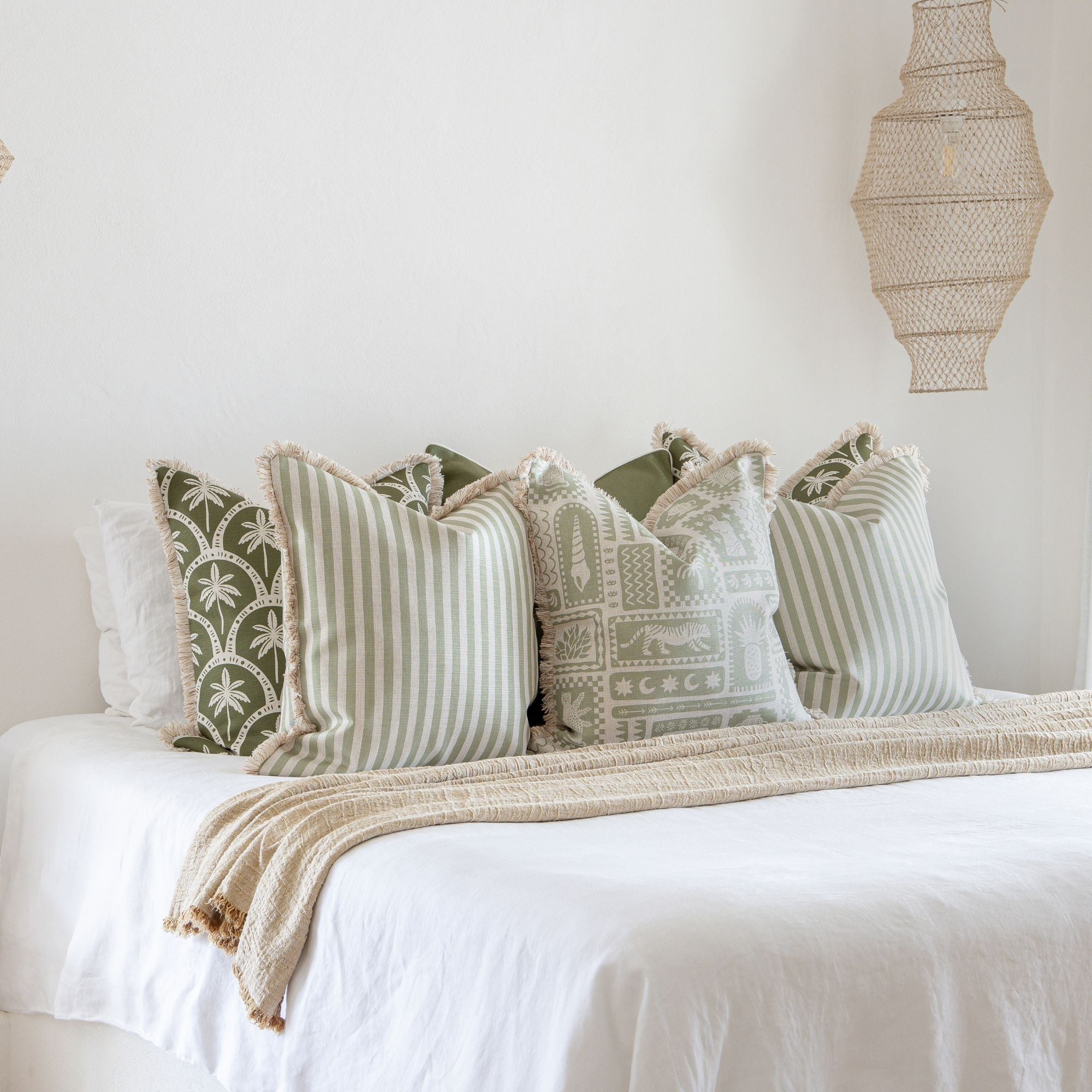 Cushion Cover Coastal Fringe Candy Stripe Sage 45cm x 45cm