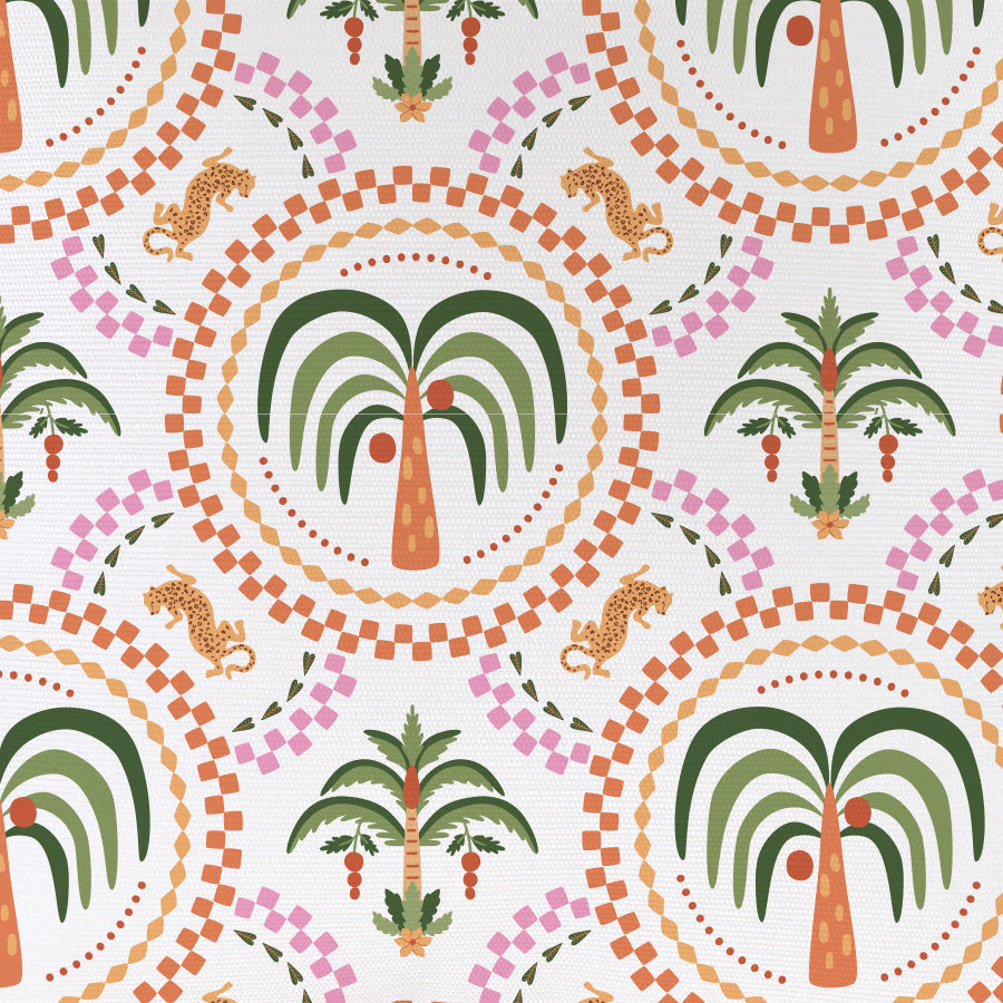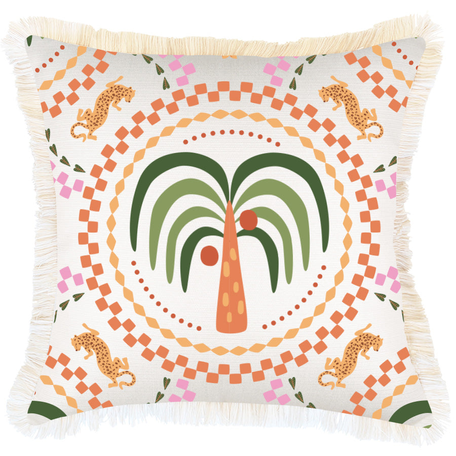 Cushion Cover Coastal Fringe Palm Mosaic White 45cm x 45cm